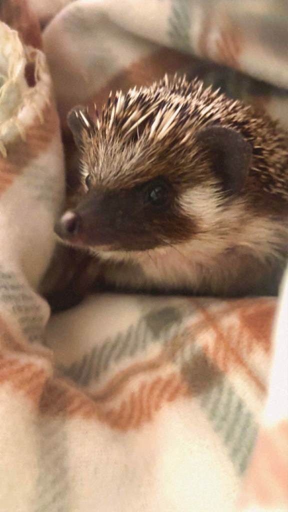 Stays with us. This gorgeous Snowflake girl who is a perfect mix of her parents except for her mask (parents are Quad stripes, she’s a full mask) is going to be the first hedgehog that I bred that stays home.